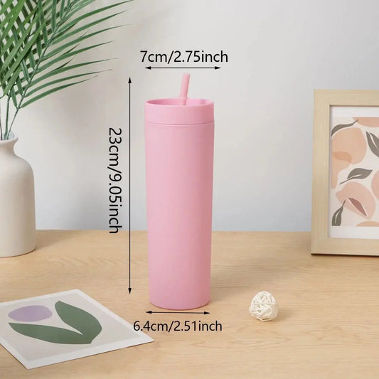Gobelet Plastique Avec Paille Intégrée Rose 500ml