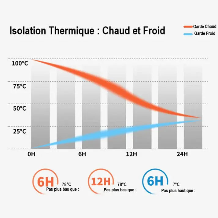 Grâce à son isolation sous vide et son acier inoxydable 316, elle conserve parfaitement vos repas chauds ou froids.