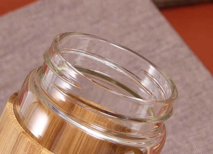 Gourde en verre avec housse en bois , Gourde en verre incassable 500ML, Gourde d'Eau en Verre 500ML, Gourde Verre Bambou 500ML,Bouteille Verre Bambou 500ML