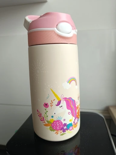 Cette gourde isotherme licorne paille habillés d'un revêtement antiglisse, parfait pour les petites mains et idéal pour glisser facilement dans le sac d'école des enfants.