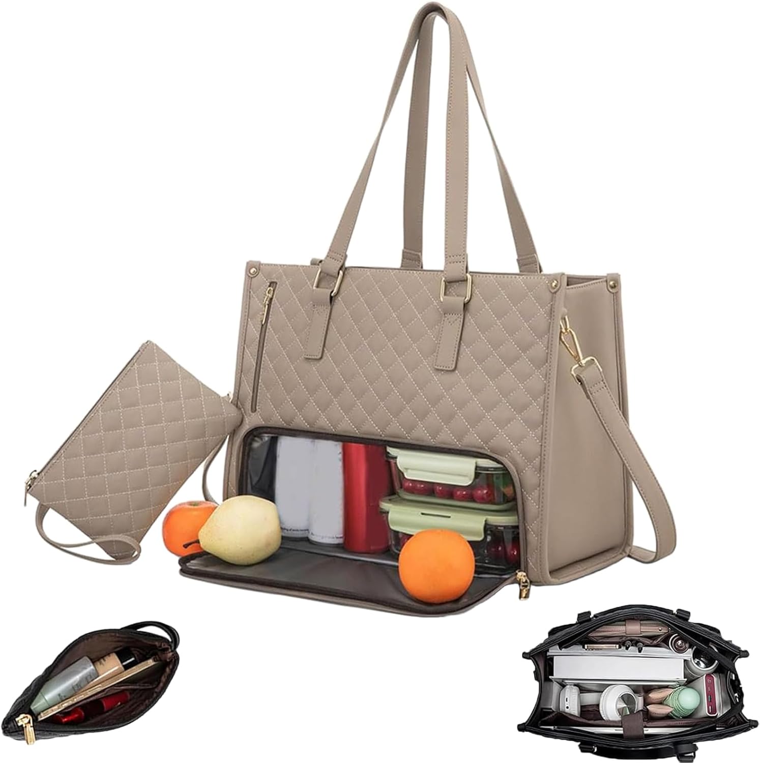 Sac Lunch Box Isotherme Repas Femme (Kaki), Sac isotherme double compartiment, Sac à main isotherme Femme : Élégance, fraîcheur et praticité réunies !